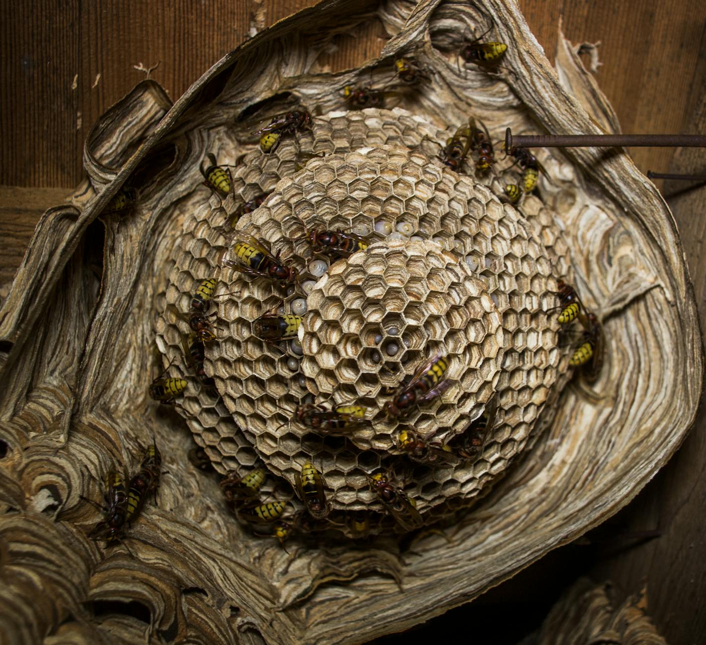 - 不完全な駆除で巣が再建される——女王蜂が生存していた場合、数日後に同じ場所に巣が再び作られます。